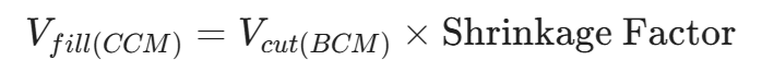 Secara teoretis, volume tanah asli (Bank Cubic Meter – BCM) akan mengembang saat digali menjadi Loose Cubic Meter (LCM), dan akan menyusut kembali saat dipadatkan menjadi Compacted Cubic Meter (CCM).